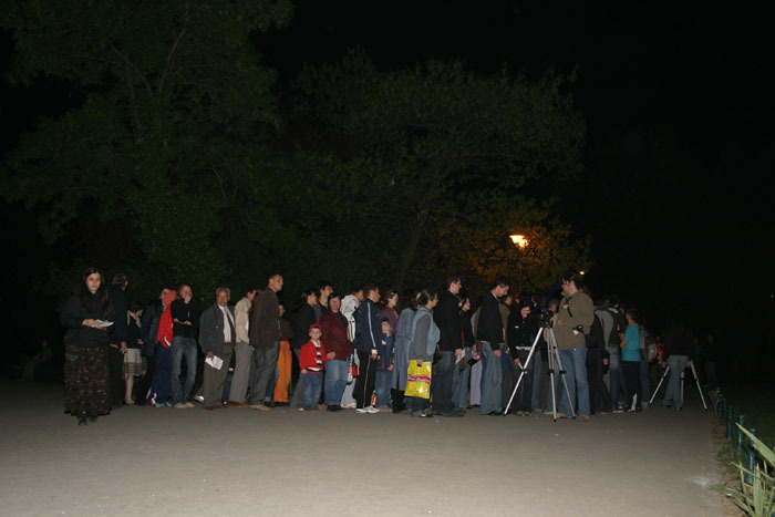 - In SIGHET o parte din membrii Astroclubului Sighet au iesit incepand cu ora 16 in parcul din fata Cinematografului Mara pentru a inaugura Ziua Astronomiei 2007. Este vorba de Sorin Hotea (presedinte), Maria Turda (responsabil relatii publice) si Gentz Arnold (secretar). De asemenea si alti membrii ai clubului au vizitat zona pe parcursul celor 7 ore ale manifestarii. S-au utilizat o luneta de 50 mm cu filtru Baader pentru observatii la Soare si un telescop Dobson 150 mm f/5 pentru observarea Lunii, planetelor Venus si Saturn si a altor obiecte ceresti. La inceput oamenii au fost mai rezervati dar o data cu lasarea serii mai multi sigheteni au dat navala la instrumente. Se estimeaza ca peste 150 de oameni au privit prin instrumentele clubului. S-au distribuit si pliante, a existat un panou cu fotografii si alte materiale promotionale. Actiunea din orasul de pe malul Tisei a fost un real succes. Un articol despre manifestarea de la Sighet se gaseste aici... (Evenimentul Zilei)